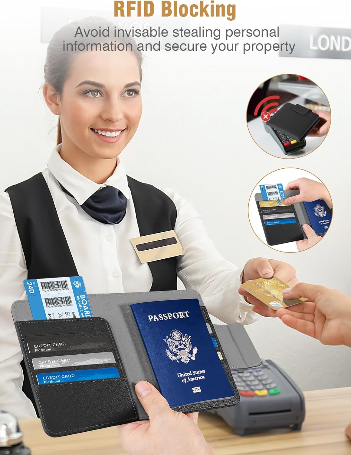 Stunning Combo Design: Passport cowl has inside 2 passport holder and eight card slots (together with 1 ID Clear Window) to carry your passport, air or steamer tickets, drivers license, ID, and a few money