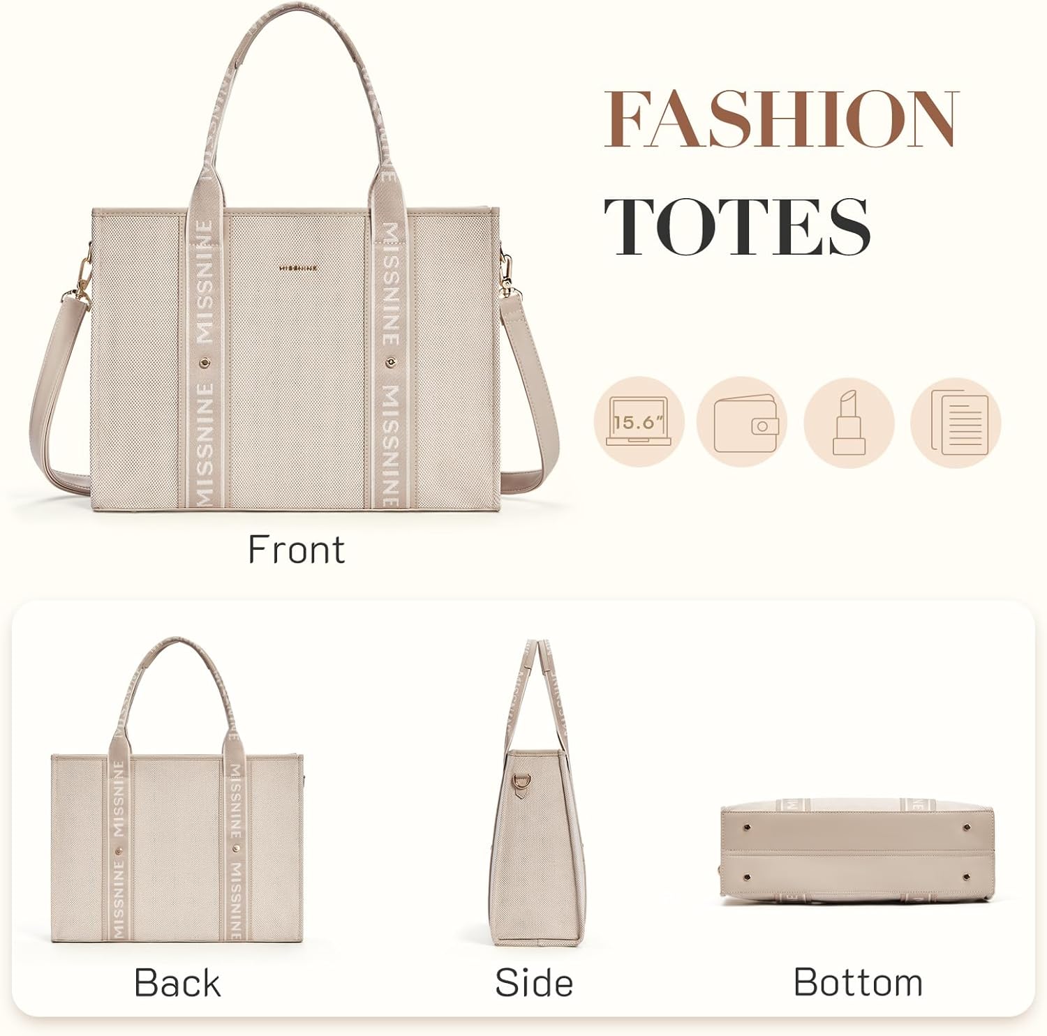 Missnine Tote Bag Canvas Laptop Bag 15.6 inch Briefcase for Women Large Capacity Handbag for Office, School, Travel
