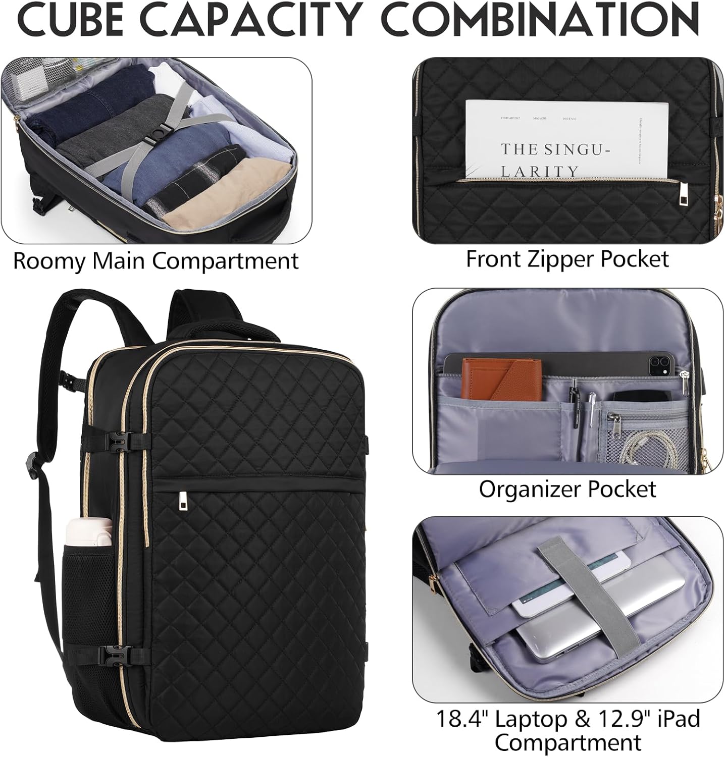 【Massive Capability Backpack with Laptop computer Compartment】:Our journey backpack has a separate laptop computer compartment which might maintain 18.4″ laptop computer and 12.9″ iPad compartment; Fundamental compartment with double zippers ensures sufficient storage room to retailer your faculty books or day by day requirements for again to highschool or an in a single day journey; Organizer compartment with numerous small pockets retains your gadgets organized and simpler to seek out.