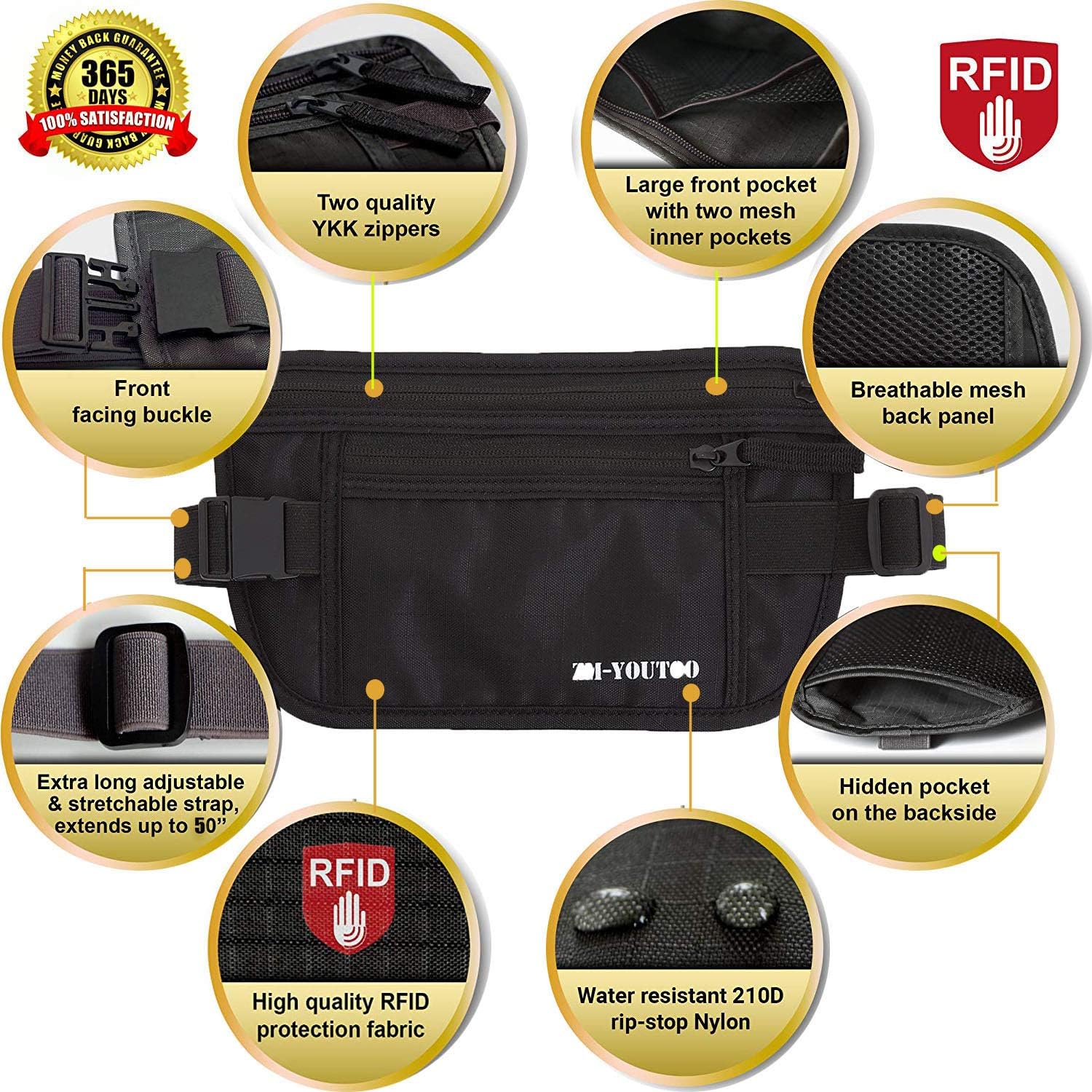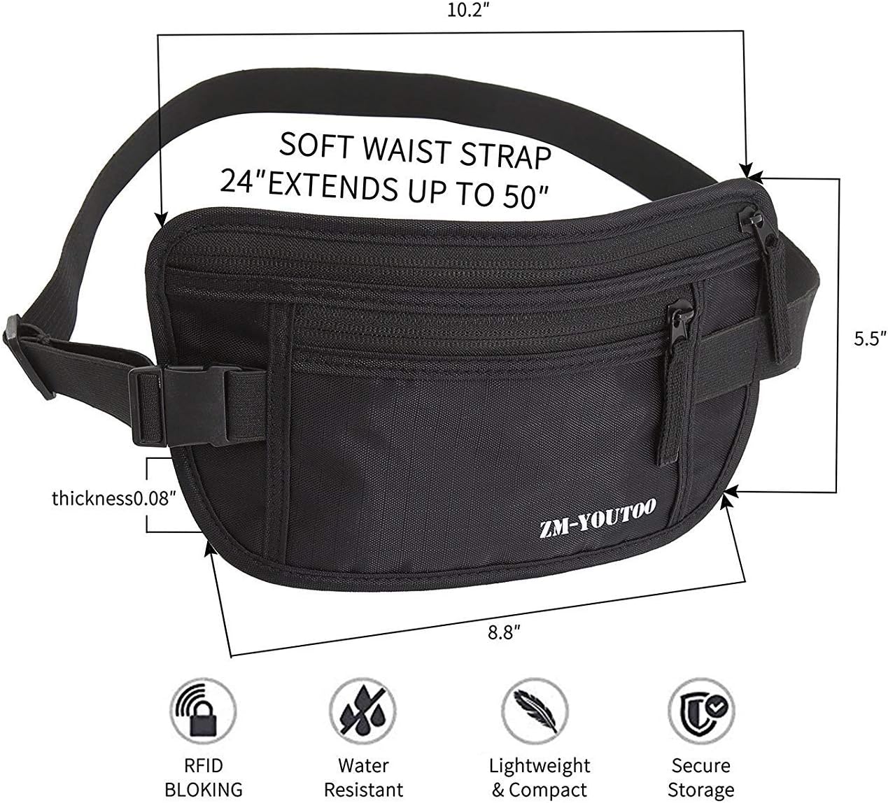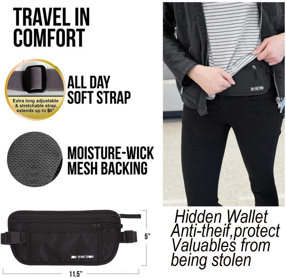 Journey in Consolation and Confidence: This cash belt is slim and discreet, permitting you to put on it underneath your garments whereas retaining your valuables near your physique.