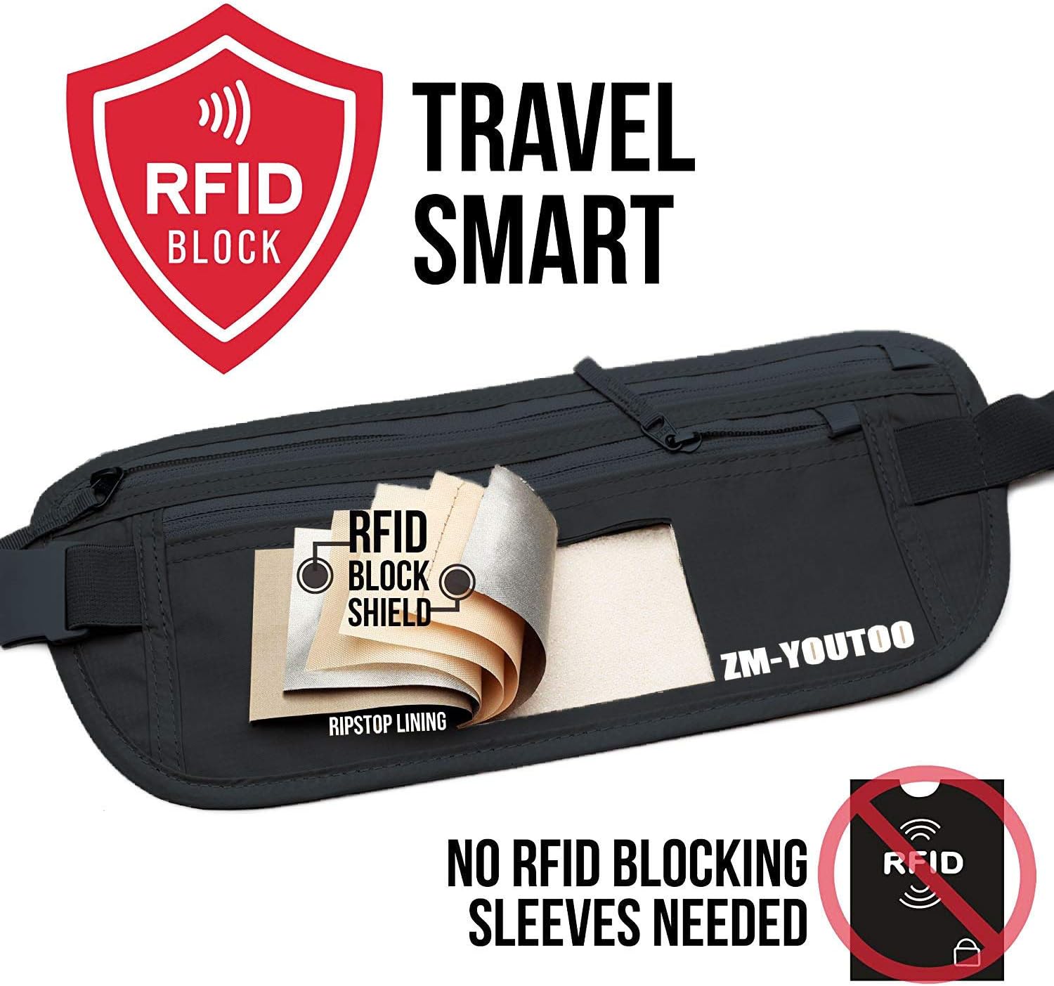 RFID MONEY BELT: Shield your bank cards and passports from being scanned by id thieves when you journey.