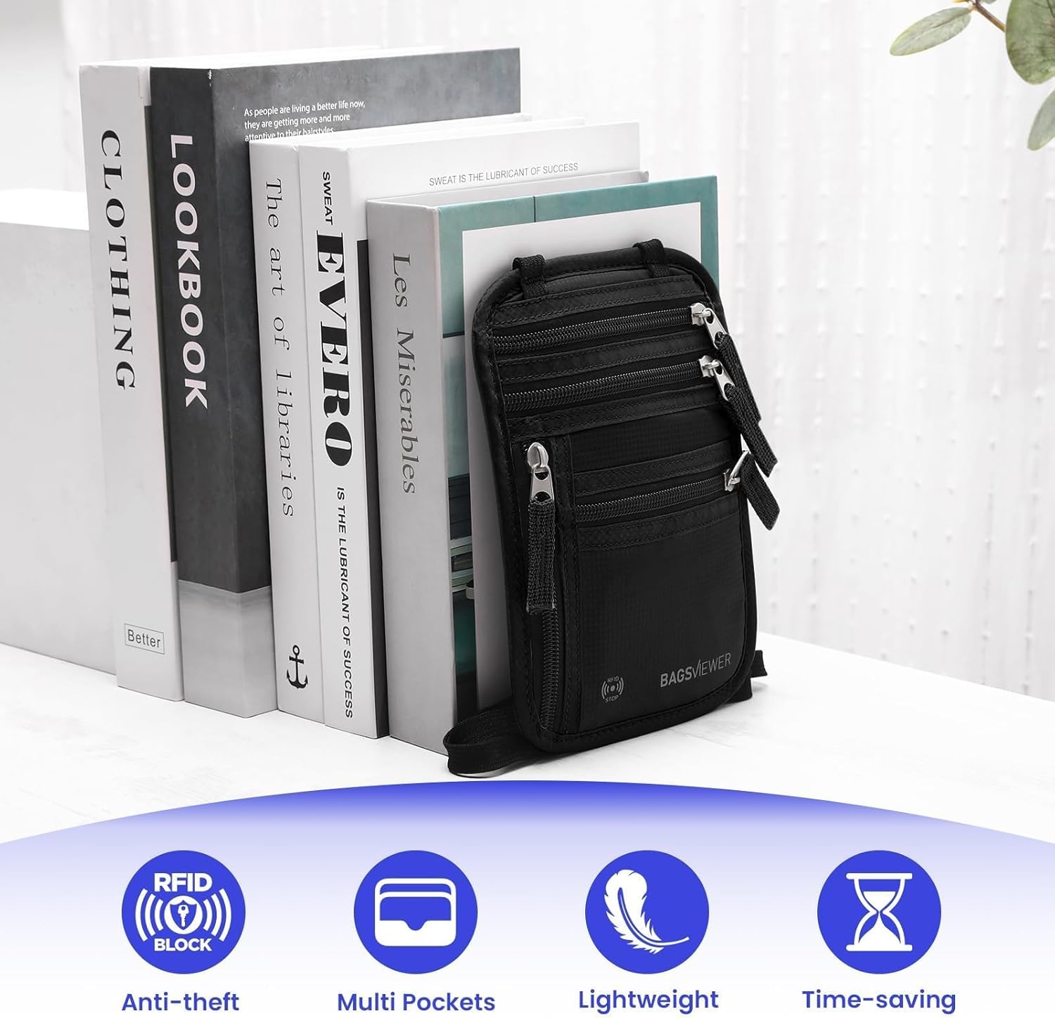 Common Match: Measuring 8 inches excessive and 5.5 inches large, the tender, adjustable neck strap can prolong from 14.5 inches, accommodating all physique varieties and splendid for any journey, preserving your valuables safe