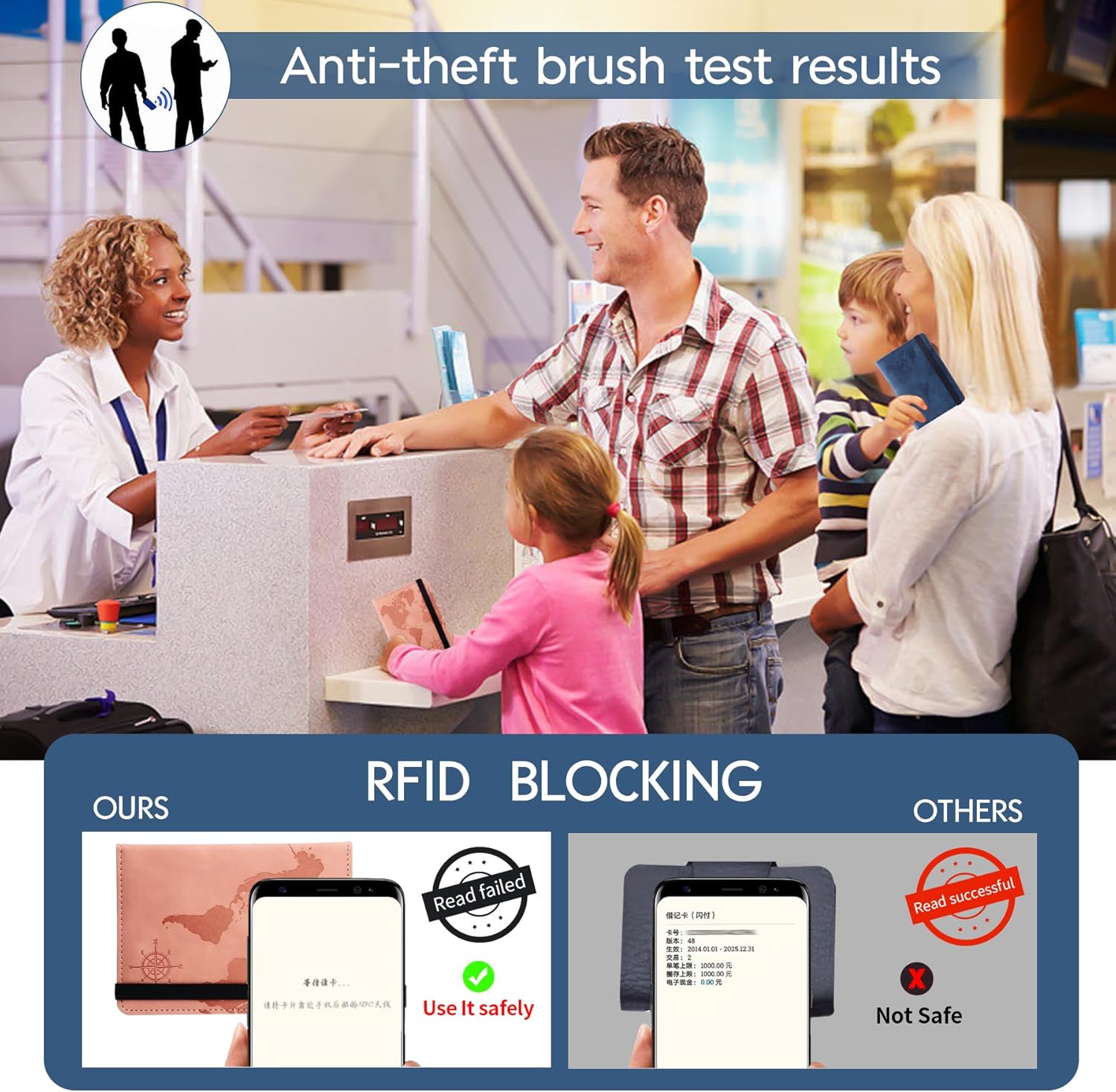 ★【RFID blocking -travel pockets】RFID Passport holder case is fabricated from Fake Leather-based and RFID-blocking protect supplies,RFID Blocking safety function ensures that your private data stays protected from potential theft when you journey.Passport holder for household can put obligatory issues, makes journey and enterprise journeys a breeze.If we get praise for journey,in fact we have to unfold the tune throughout USA.