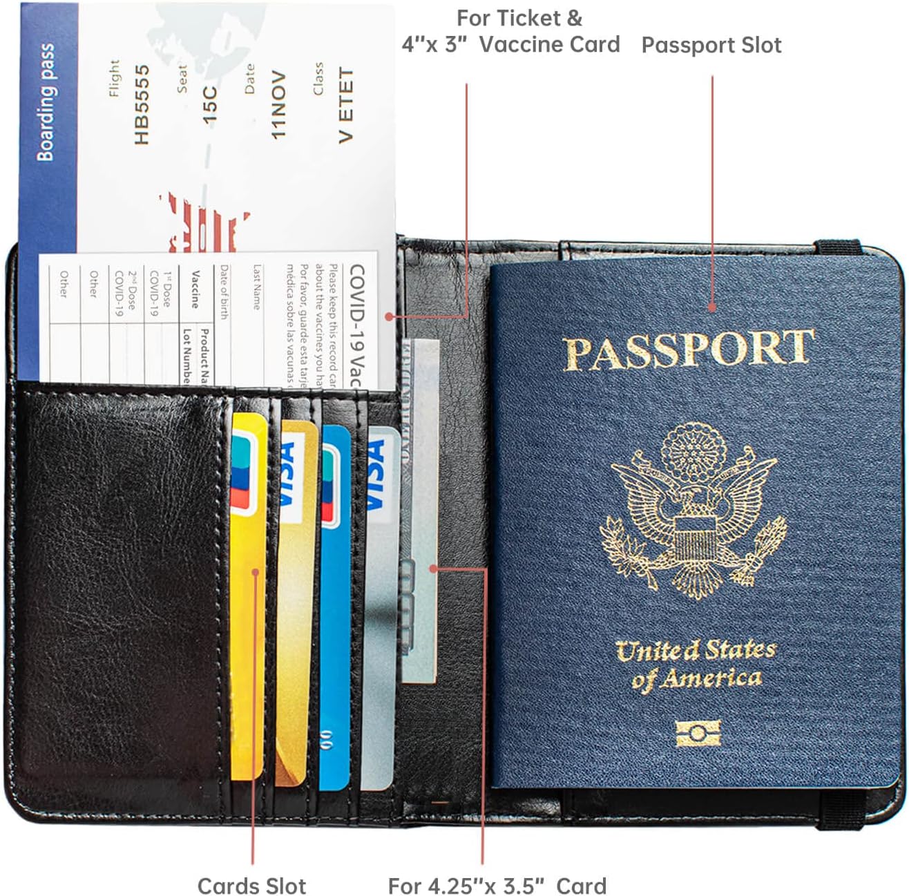【Defend Info 】The RFID Passport vaccine card holderis fabricated from Fake Leather-based and RFID-blocking protect supplies, Fake leather-based is a good substitute to actual leather-based as a result of it’s extra reasonably priced and infrequently extra environmentally pleasant. RFID Blocking function ensures that your private data stays protected from potential theft whilst you journey.
