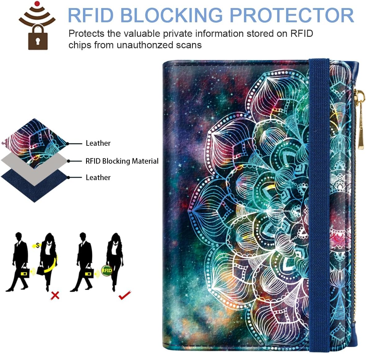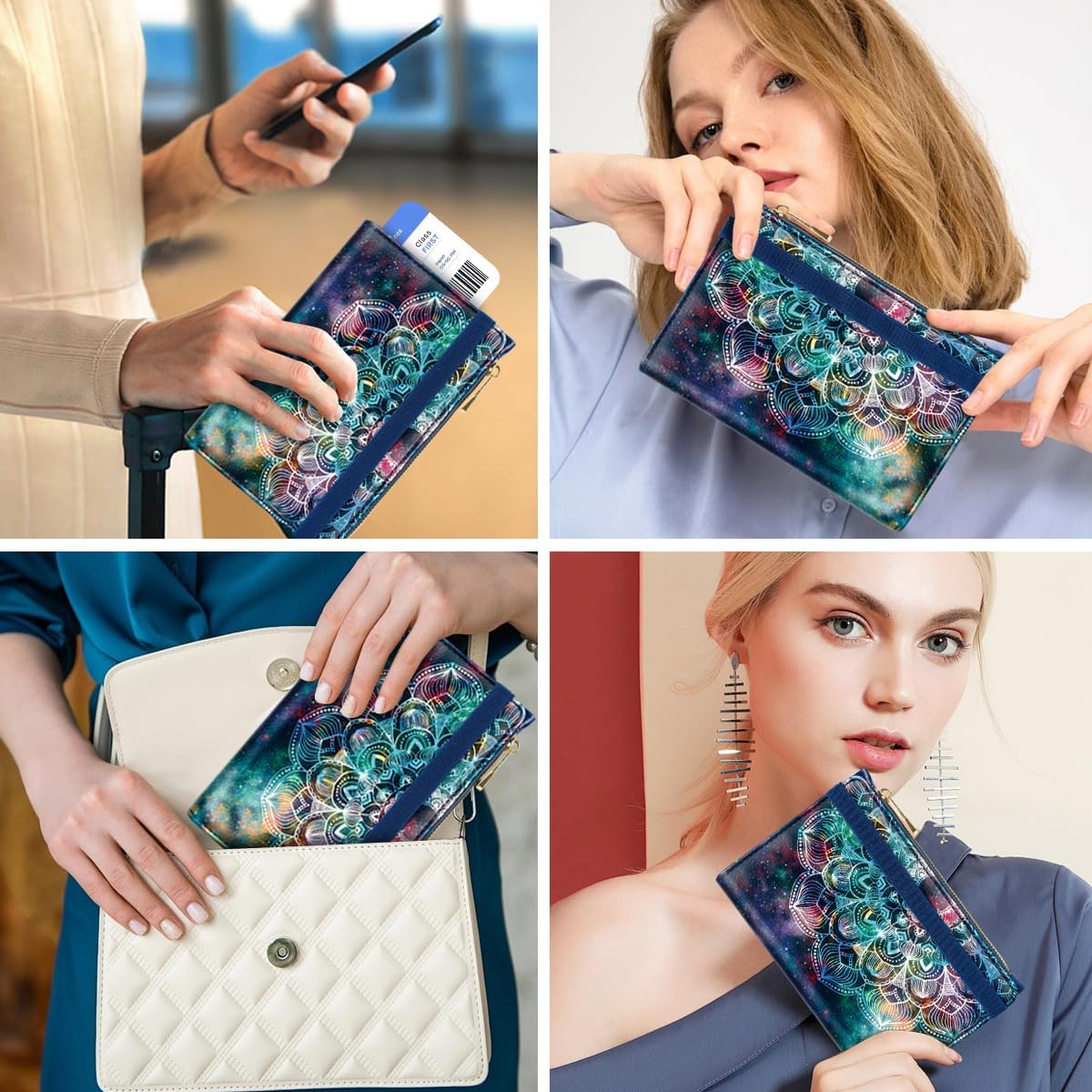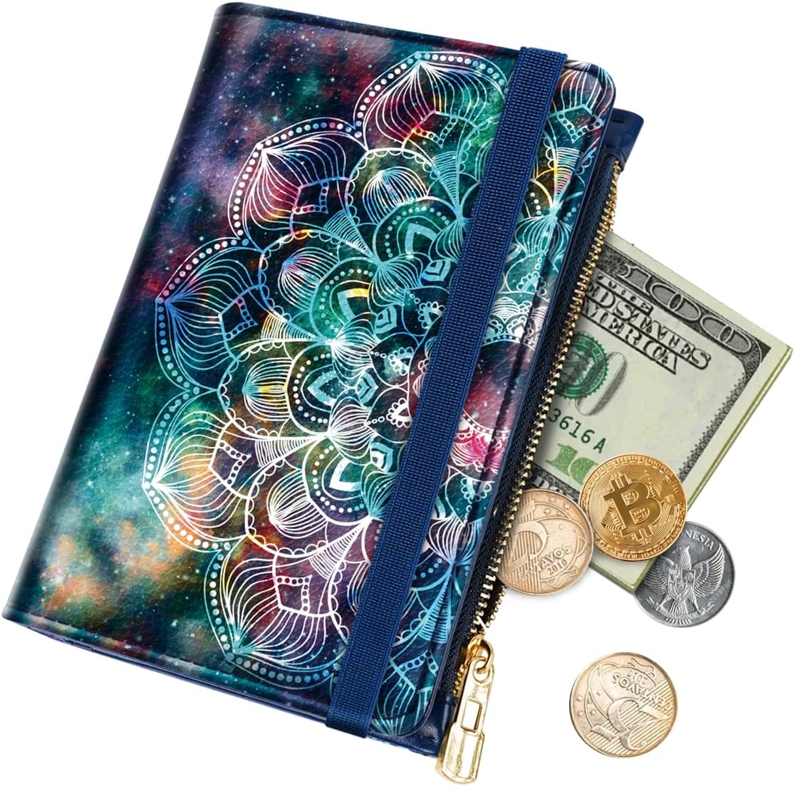 Passport Holder Cover with Zipper Coin Pocket Travel Wallet RFID Blocking Leather Passport Cover Credit Card Holder for Women, Mandala