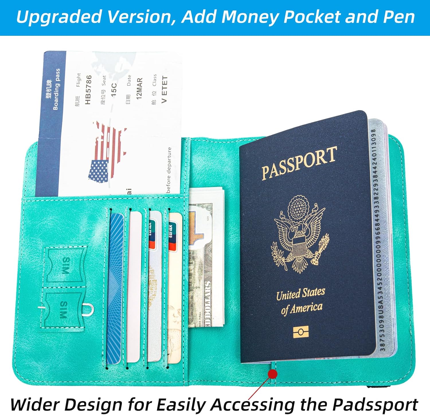 Passport Holder for travel – Cover Wallet -Travel Essentials RFID Blocking Travel Accessories for Women Men (aquamarine)