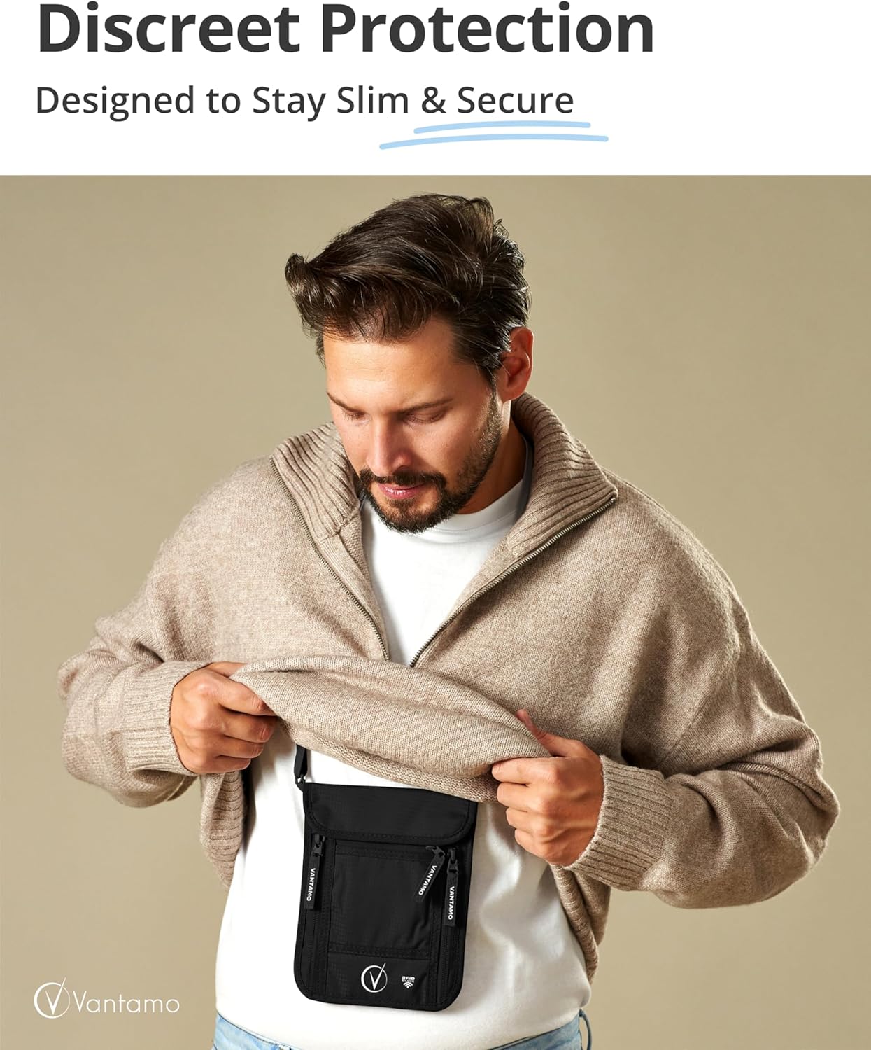 Premium Neck Wallet Travel Pouch and Passport Holder, RFID Protected, Fits Passport with cover. Passport Holder Neck For Men and Women