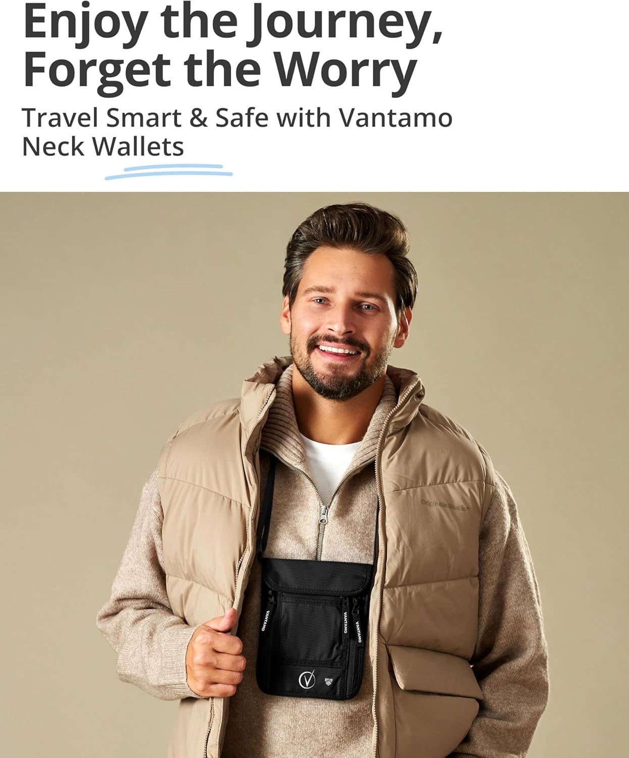 Premium Neck Wallet Travel Pouch and Passport Holder, RFID Protected, Fits Passport with cover. Passport Holder Neck For Men and Women