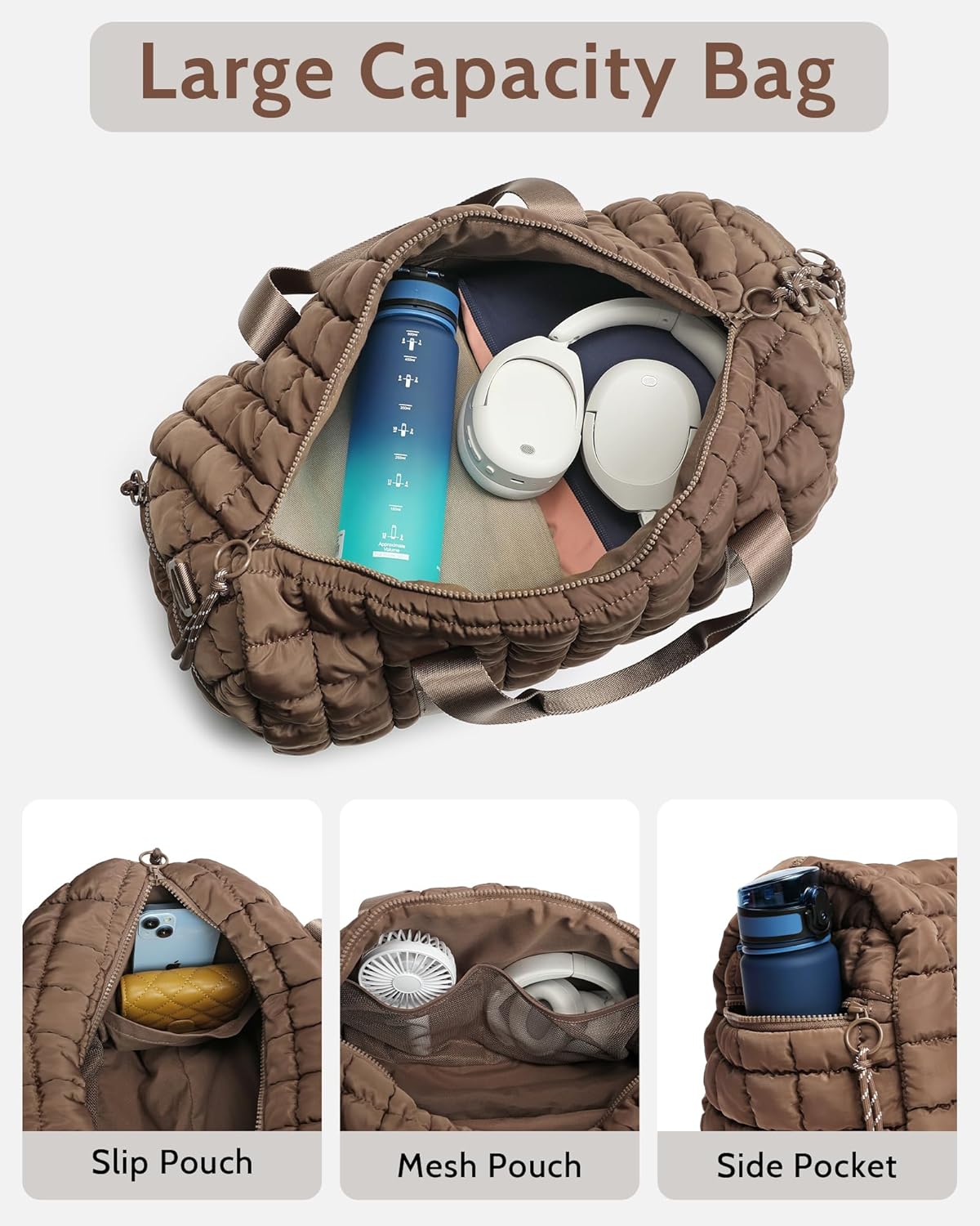 【Quilted Puffer Design】Produced from waterproof nylon cloth full of mushy padded cotton, this bag has a cute, fluffy look and a snug really feel. It is ultra-light, waterproof, and sturdy.