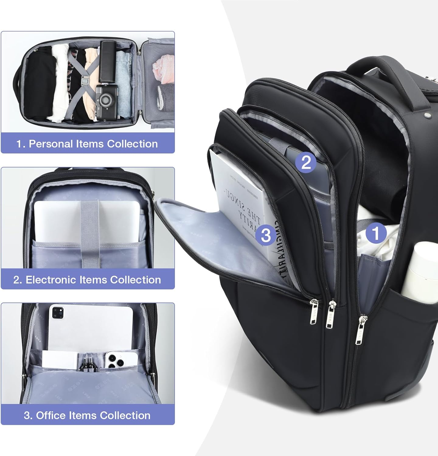 [Large Capacity Rolling Backpacks] This rolling backpack keep it up baggage can maintain laptops and macbook as much as 17 inch.The max quantity of this wheeled backpack for adults is 37L with 3 seperate roomy compartment. The entrance compartment is for workplace objects. The center one is for digital gadgets. And the most important one is in your private travelling objects.Effectively manage your travlling objects and make your journey simpler.