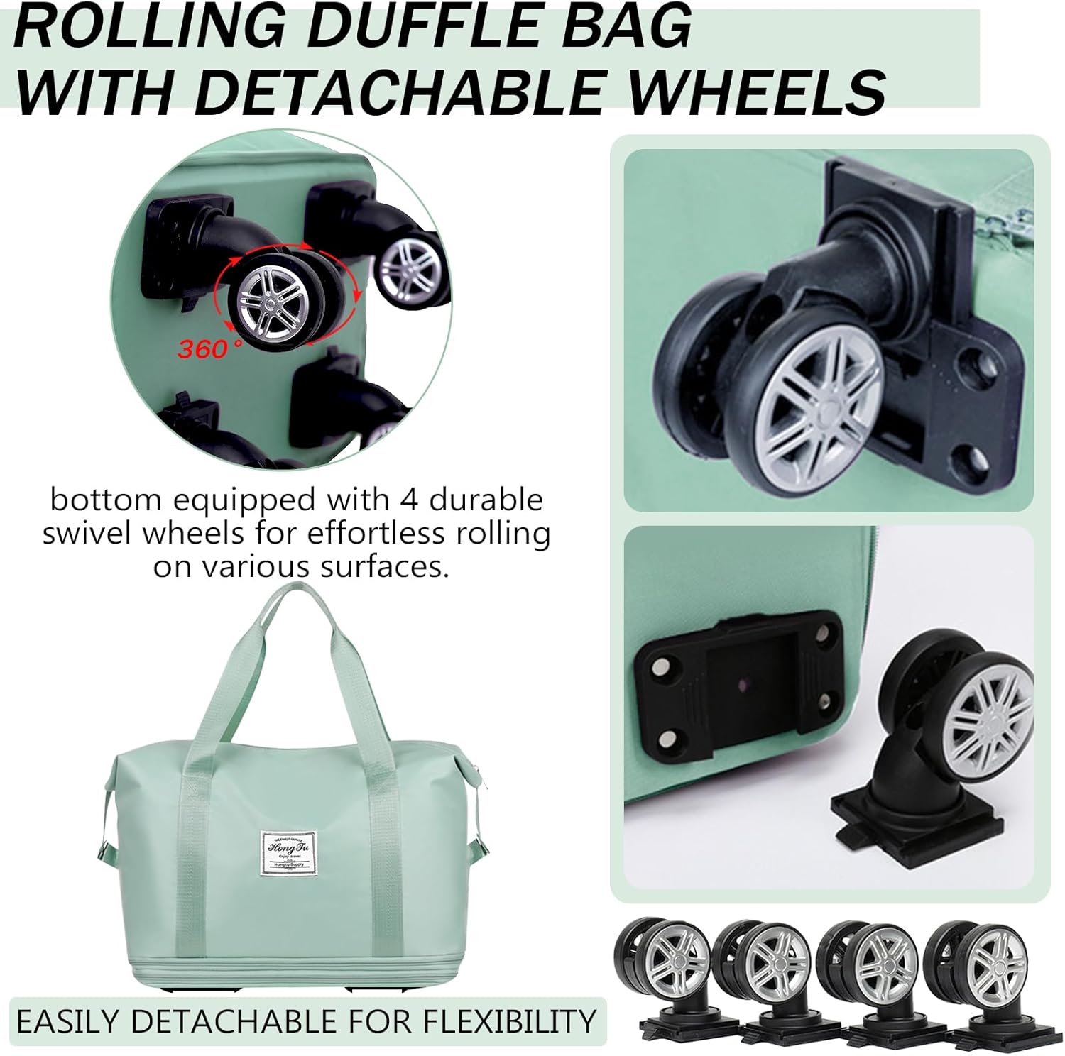 【Rolling Duffle Bag with Spinner Wheels】This duffel bag for touring is supplied with 4 removable wheels on the backside, which makes it simpler to tug even on tough or uneven surfaces, permitting the bag to maneuver easily in any path. The underside wheels may be rapidly disassembled when not in use, making it very appropriate for day by day and journey carrying.