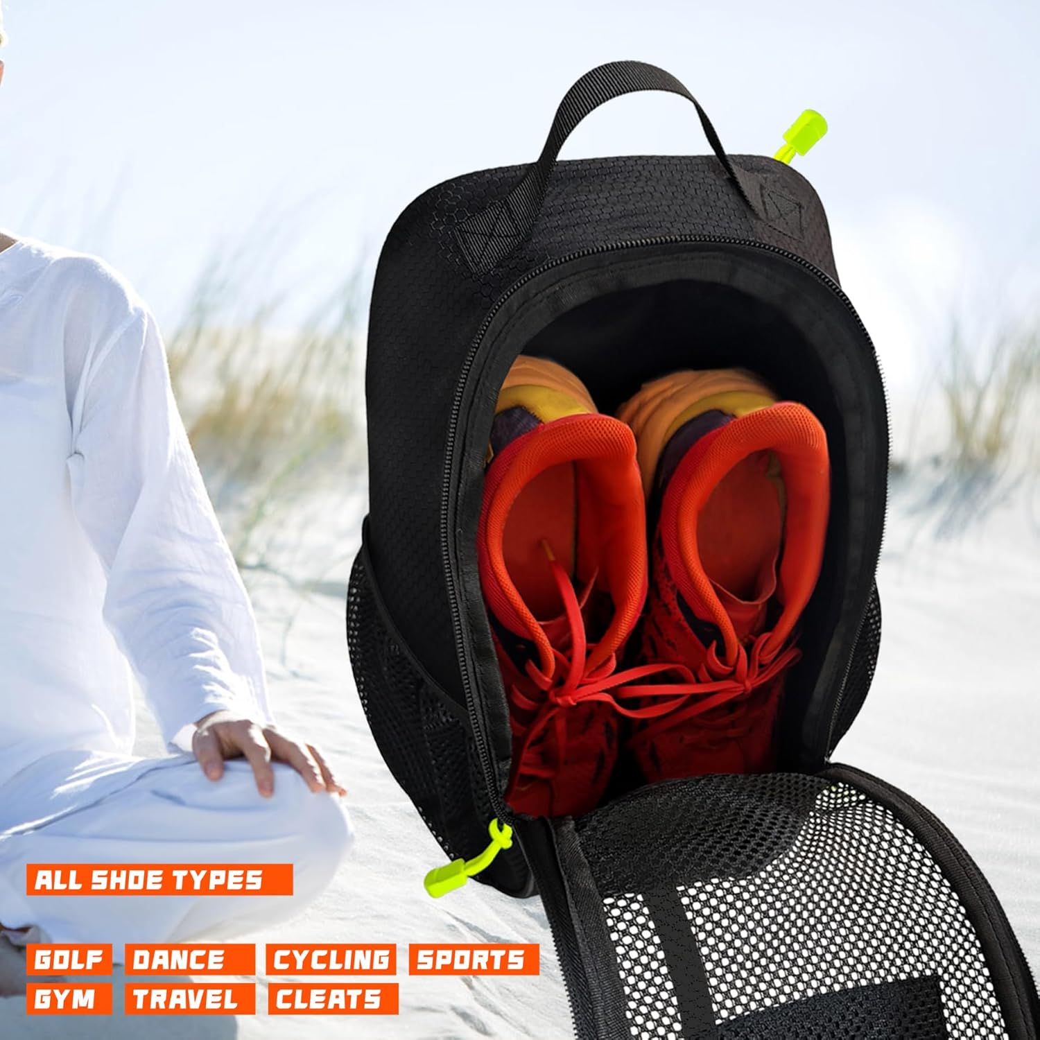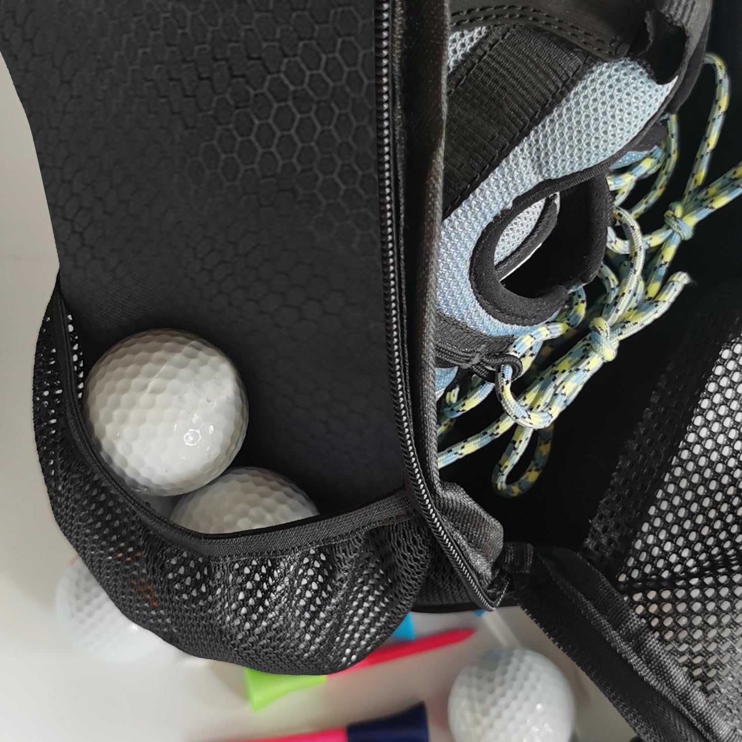 Sport Shoe Bag : Handy pockets can retailer tees, golf balls, socks, and so on.Exterior mesh pocket holds issues for fast entry.
