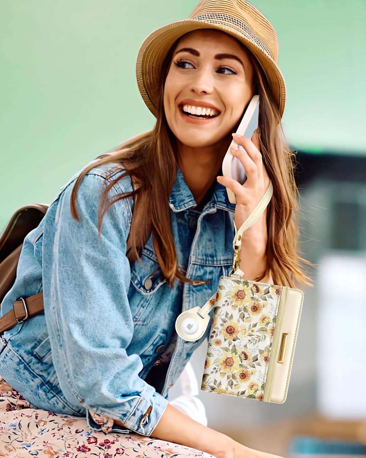 Slohif Airtag Passport Holder Cover Wallet Case for Travel Women – Leather RFID Blocking Passport Book Multiple Personalized Organizer Slim Portable Carrier Card Slots Protector Sleeve Sunflower
