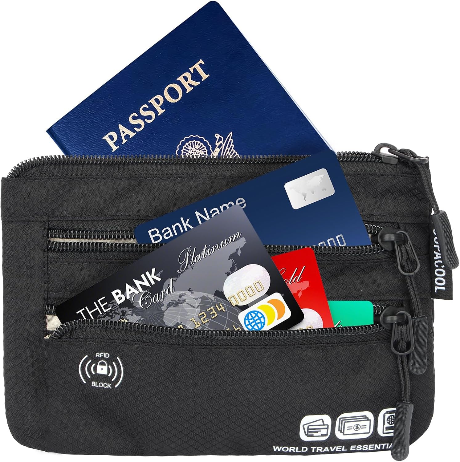 Protects Valuables & Identification:Journey Pouch inbuilt RFID blocking can successfully shield your financial institution card, ID card, passport and different essential gadgets towards theft. Zipper closure can successfully shield your private gadgets from being misplaced throughout airports.