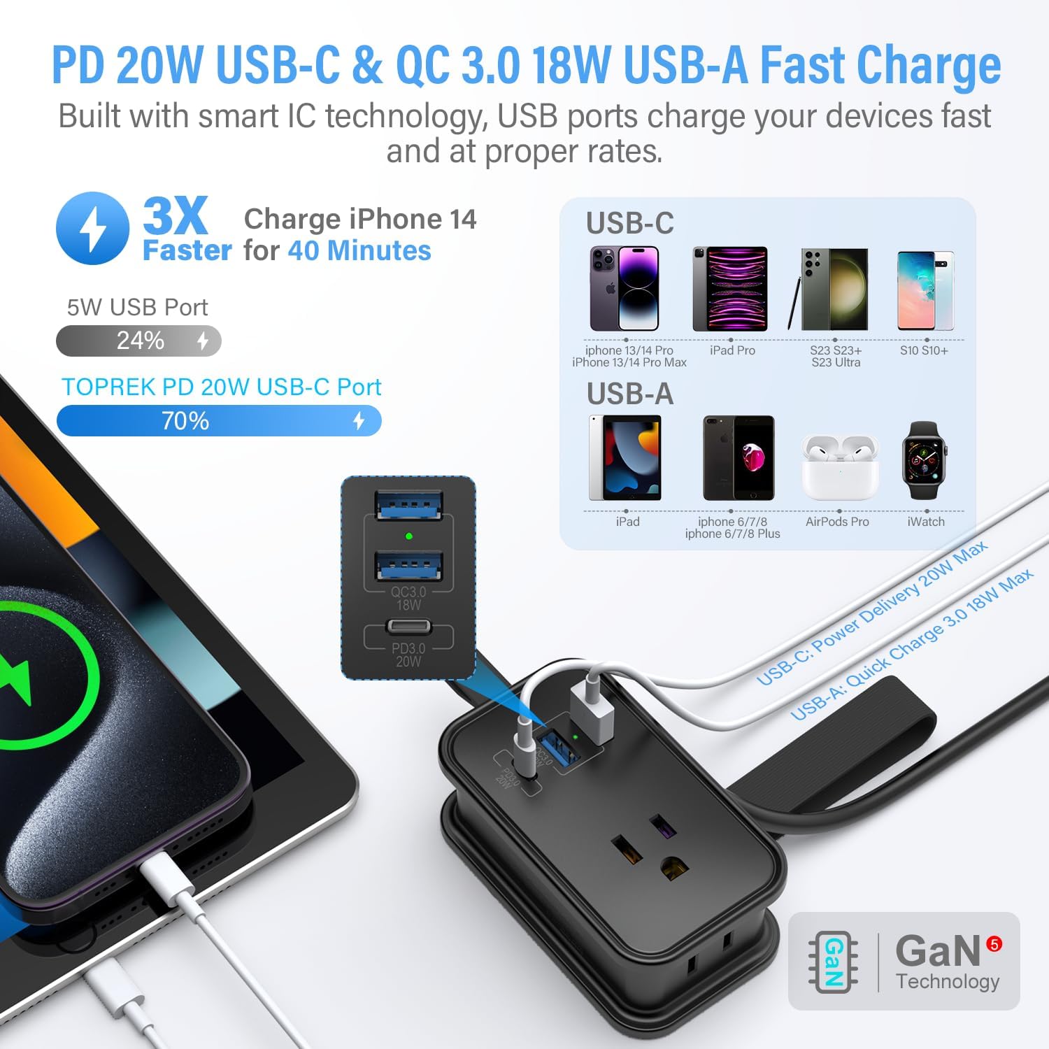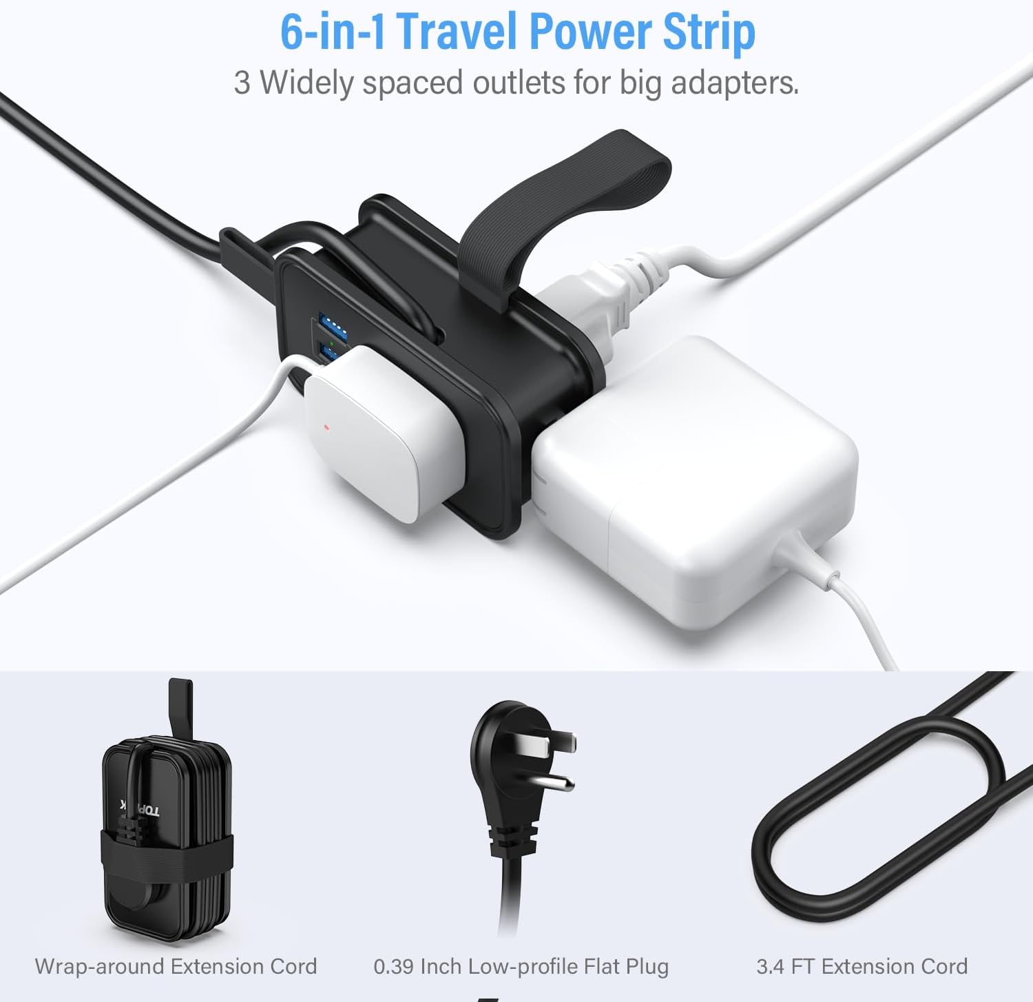 TOPREK 6-in-1 Journey Energy Strip supplies flexibility in a compact design with decisions to energy up peripherals and electronics, and also you needn’t fear if if there are sometimes not sufficient plugs any extra, or in any other case plugs positioned in unusual areas that your USB cables to your units don’t attain simply, while you journey continuously in accommodations and AirBnbs.