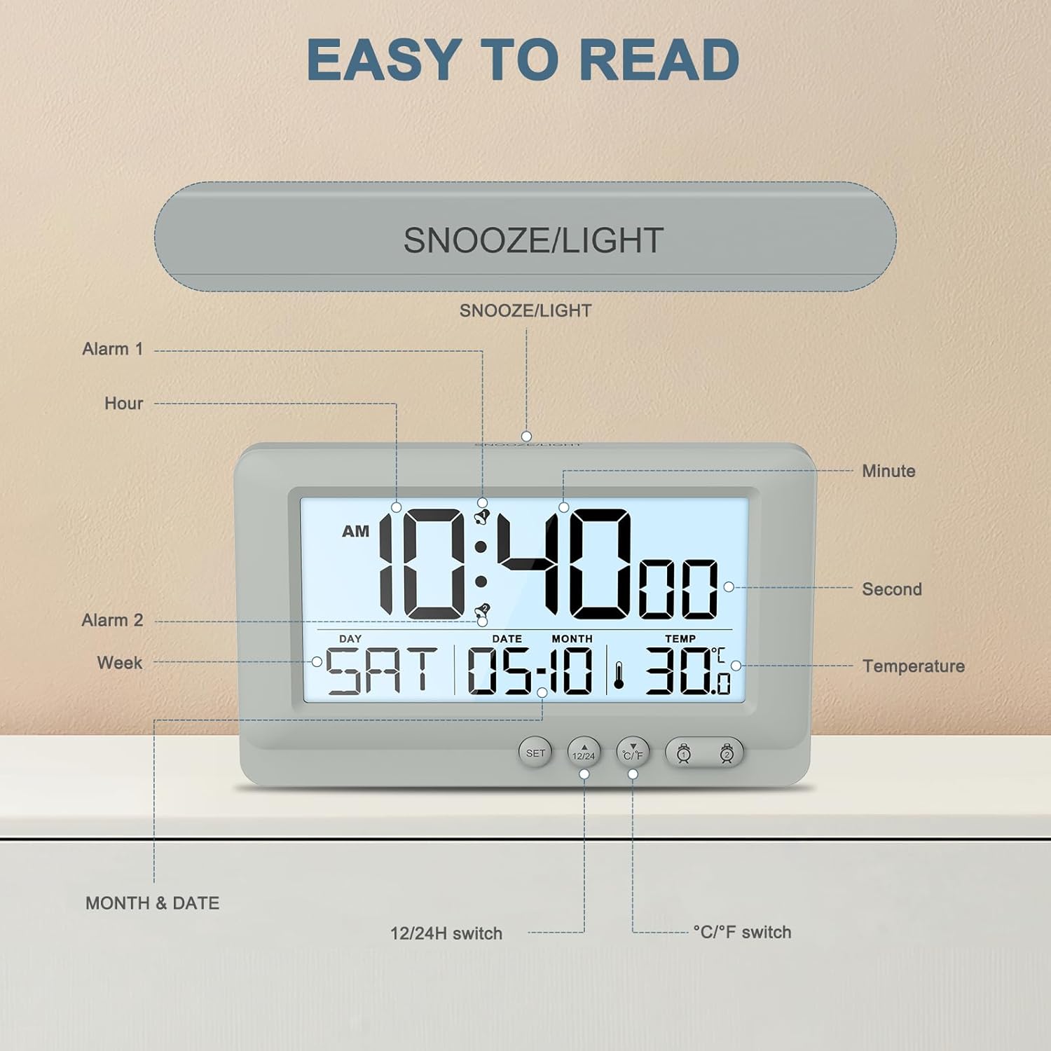 【Twin Unbiased Alarms】This bed room alarm clock is supplied with two units of independently switchable alarms, you possibly can set totally different reminder instances for various actions to make sure that you will not miss any necessary issues