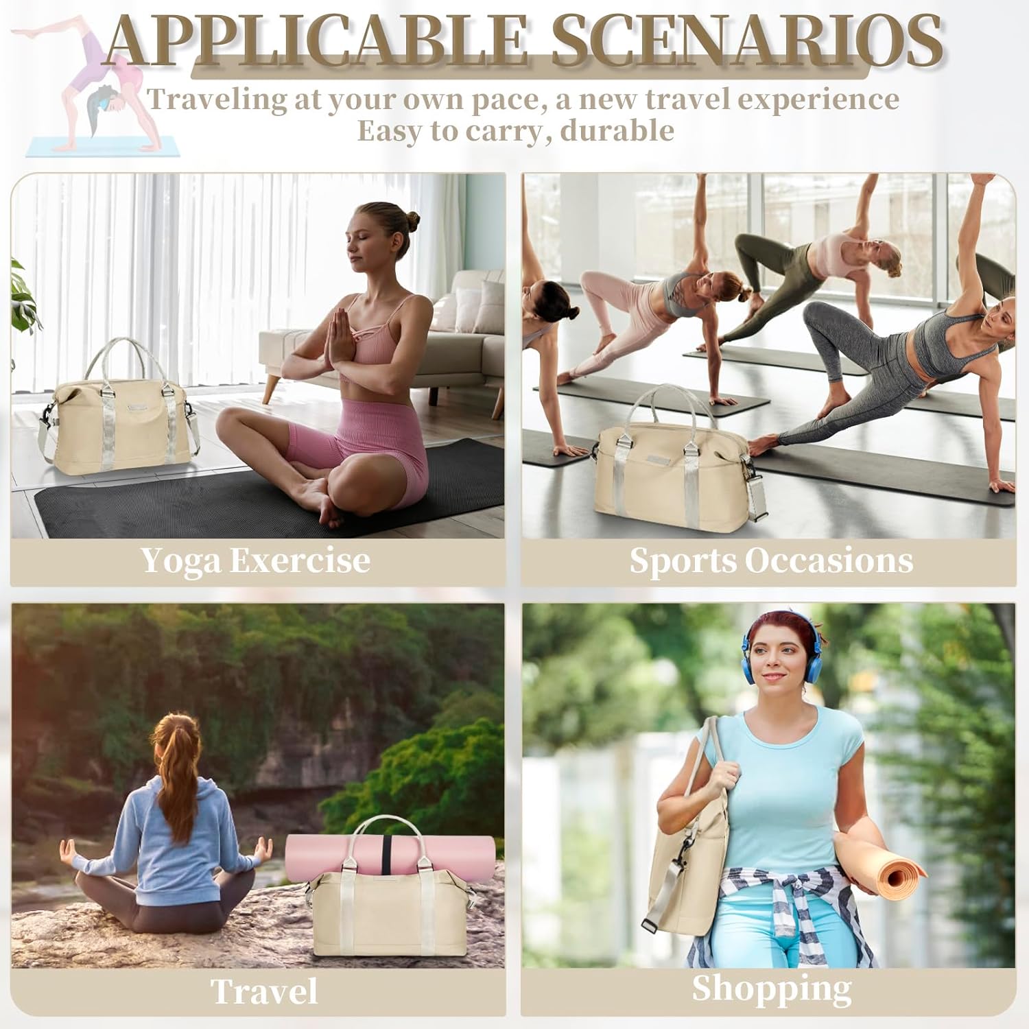 Travel Duffle, Waterproof Gym Weekender Overnight Tote Carry On with Luggage Sleeve, Dry Wet Pocket, Labor Delivery Hospital Bag
