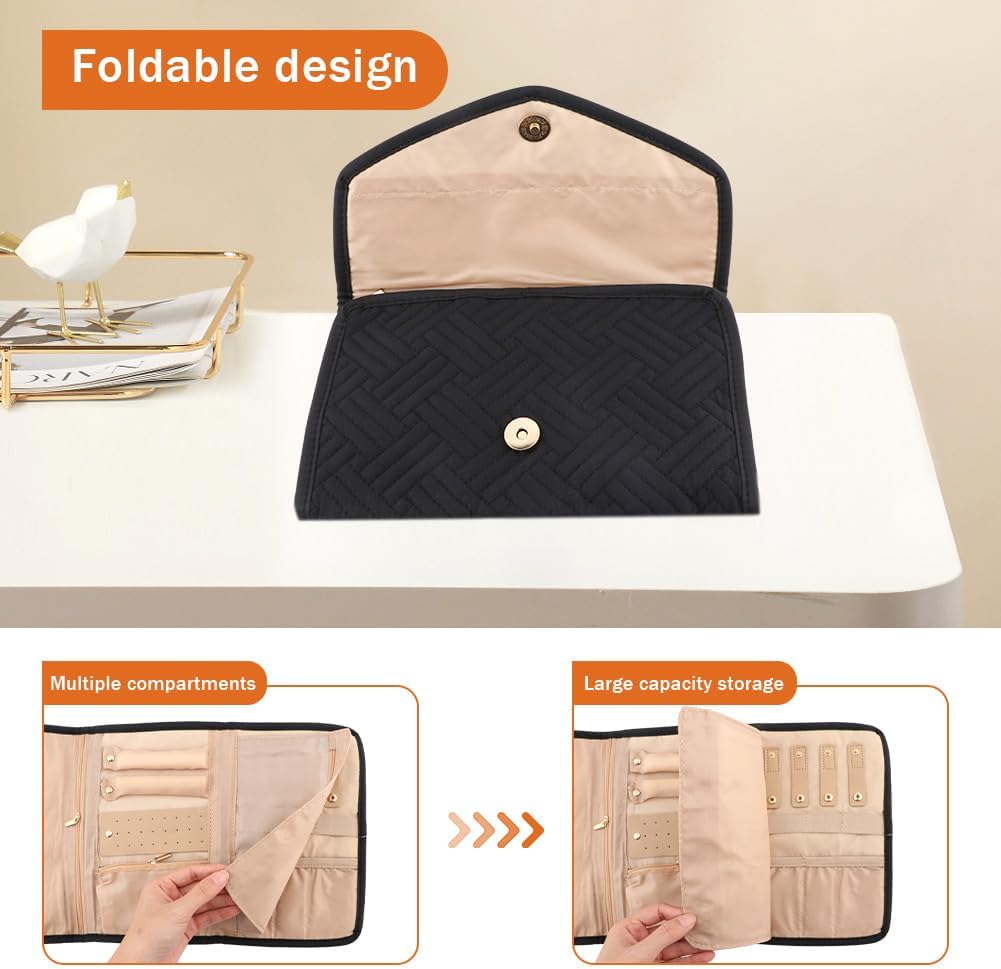 【Journey Necessities Jewellery Organizer Case】- The jewellery organizer roll incorporates a safe buckle, maintaining your jewellery objects safely tucked away. The black of this jewellery case provides a contact of sophistication to your journey equipment. Whether or not you’re occurring a enterprise journey or a trip, retains your jewellery organized in an elegant and trendy method.