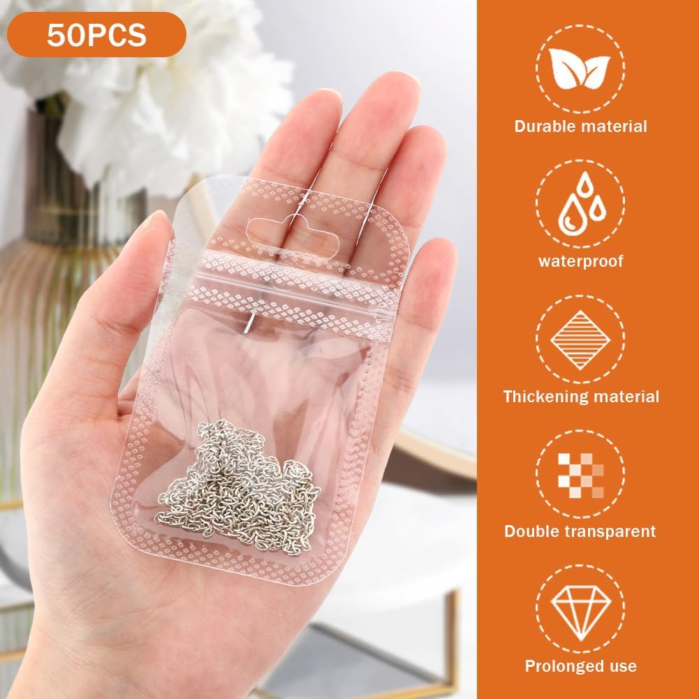 Journey Jewellery Case Organizer, Foldable Jewellery Storage Roll with 50 Self Sealing Clear Baggage for Earrings/ Necklaces/ Rings/ Bracelets/ Brooches Show and Storage, Journey Necessities Instruments for Girls Ladies