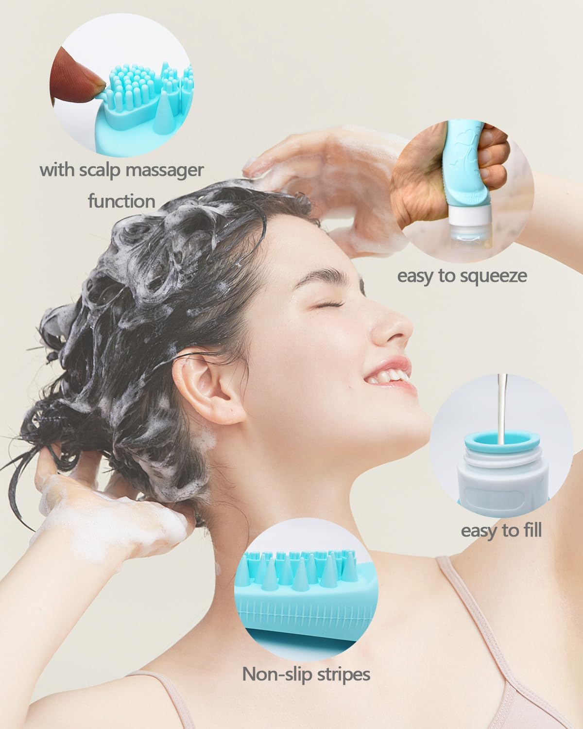 Multi-Purposeful Journey Bottles: The bottles have silicone bristles for varied scrub features .The journey dimension containers shampoo bottles can wash face, physique scrub, wash hair.