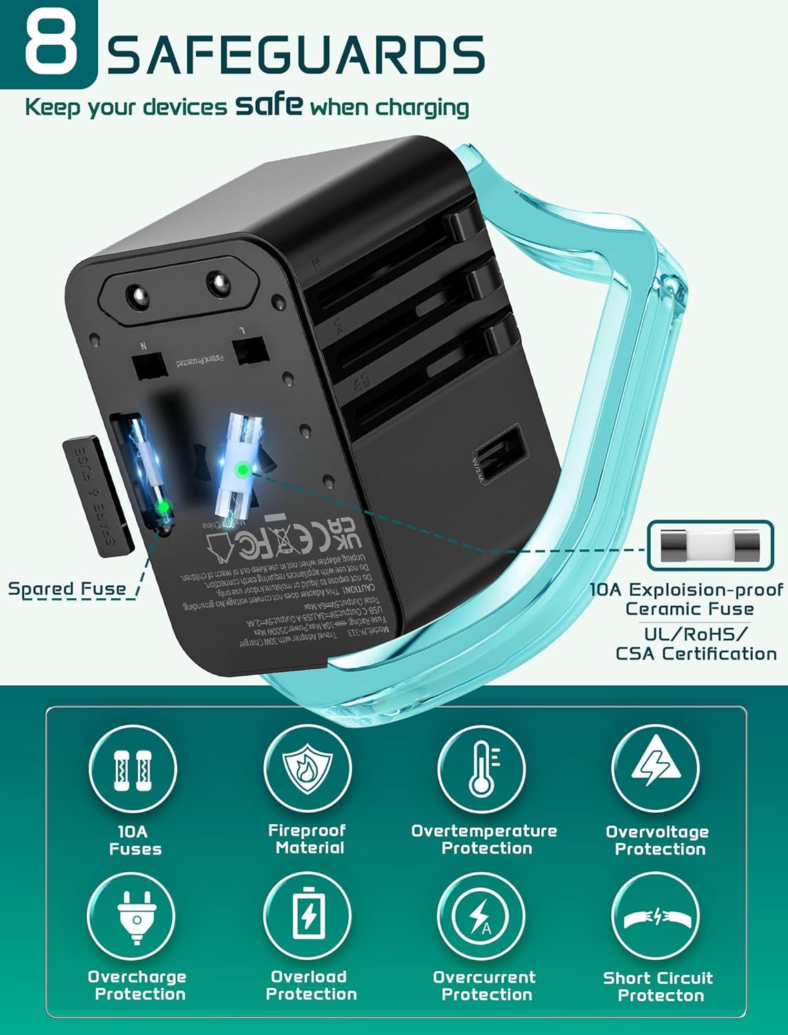 8-Layer Security Safety: Constructed with 8 safeguards, together with overload, short-circuit, and surge safety, this journey adapter and voltage converter retains your gadgets secure wherever you journey. It meets worldwide security requirements (FCC, CE, RoHS) and options sturdy, fire-resistant supplies to forestall accidents.