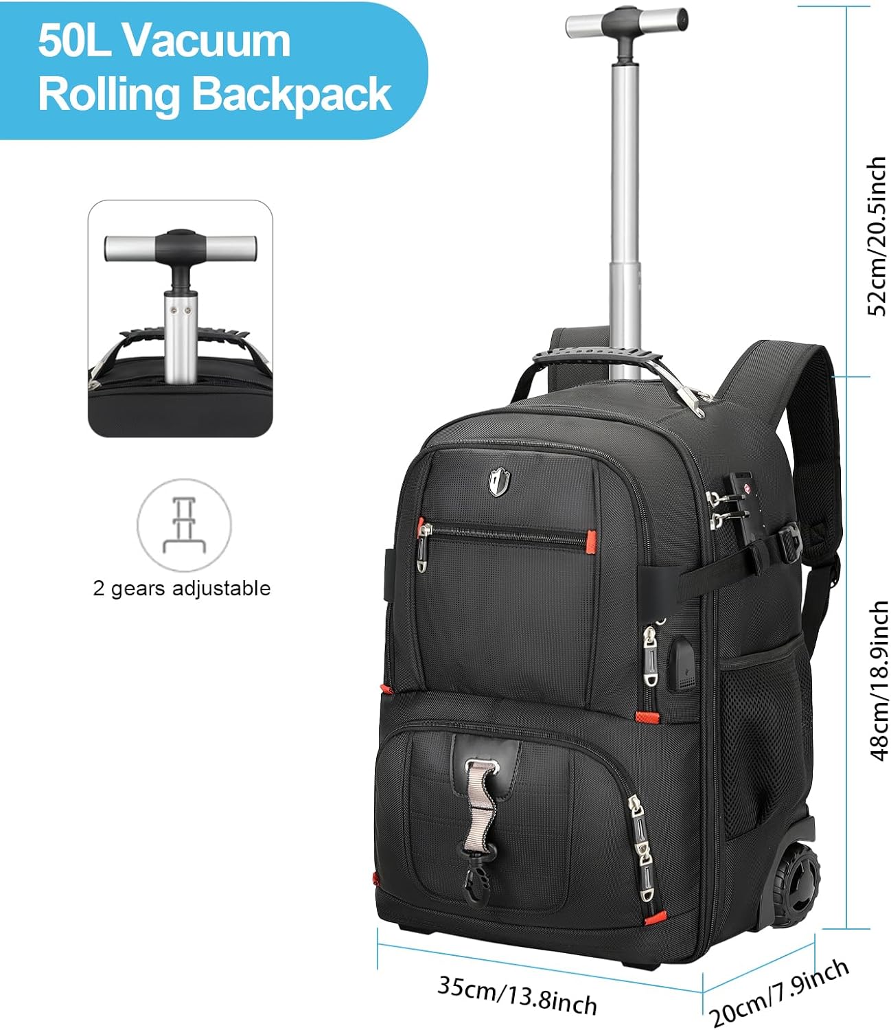 【Versatile 2-in-1 Journey Backpack】This rolling backpack options an aluminum alloy rod, non-slip wheels, and removable shoulder straps, simply reworking from a backpack to a carry-on suitcase. Good for every type of journey, together with weekend journeys and enterprise journey.