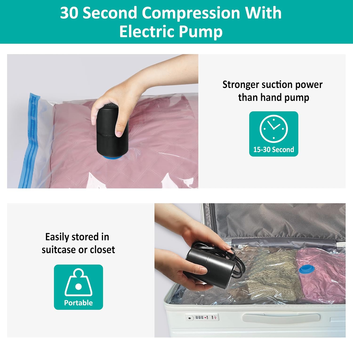 Highly effective Electrical Air Pump for Quick & Environment friendly Compression: Our vacuum bag combo consists of an electrical air pump, making certain swift and hassle-free air elimination from the vacuum luggage. Merely plug the electrical pump right into a socket, connect it to the bag’s valve, swap it on, and inside seconds all the air will probably be sucked out.