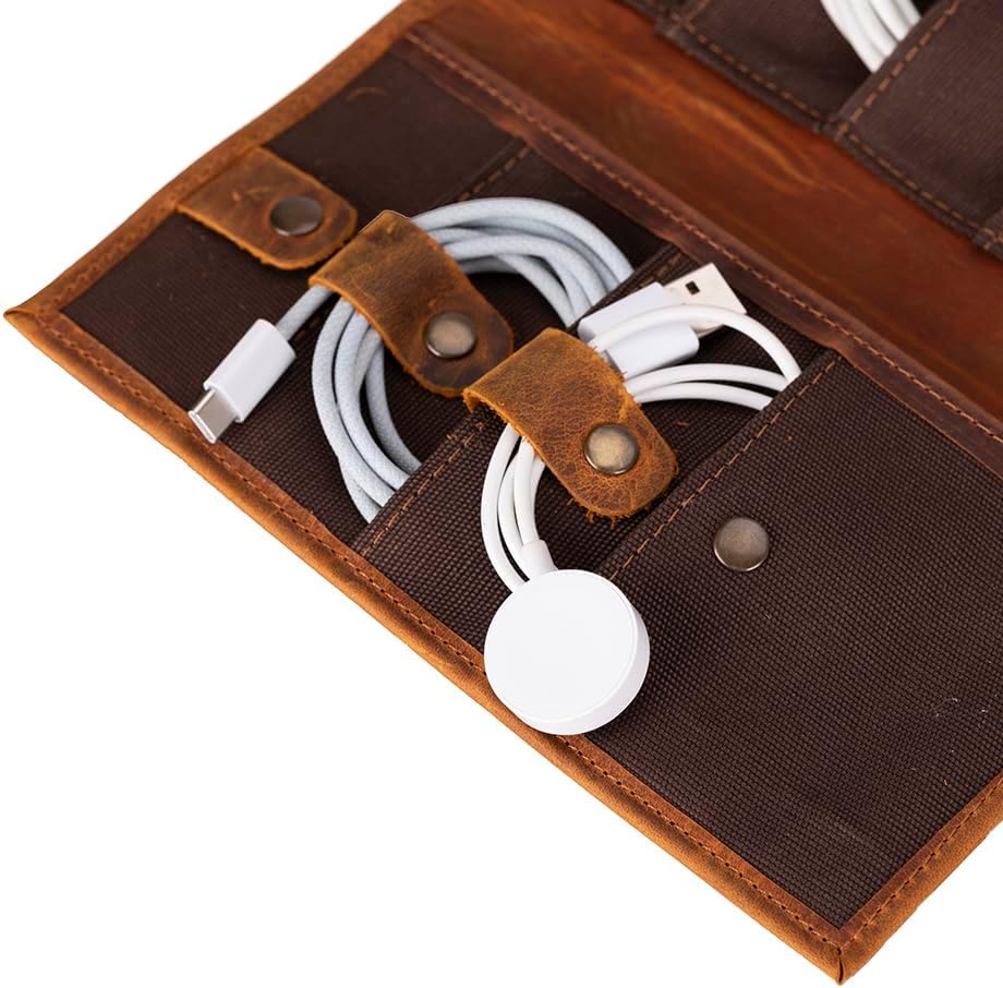 VERSATILE STORAGE: Six elastic holders and a big pocket accommodate cables, chargers, passport, money, and small equipment