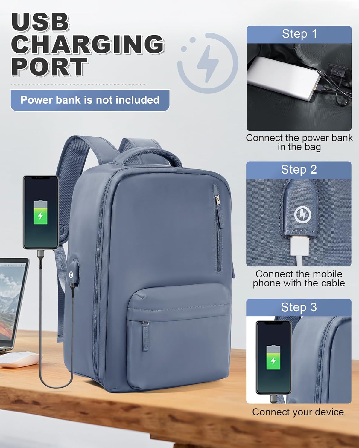 【USB Charging Port】The journey enterprise backpack has a USB port, which may be linked to your individual rechargeable battery by the USB port, making it extra handy so that you can cost your telephone whereas touring.