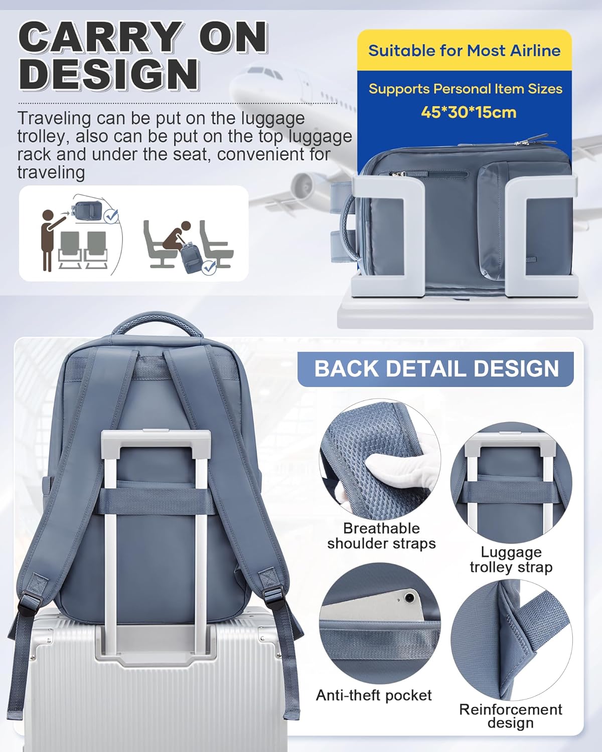 【Baggage Strap & An【Big selection of makes use of】You should use this backpack as a journey backpack, leisure backpack, enterprise backpack, daypack, appropriate for quite a lot of situations.ti-Theft Pocket】The again of the informal journey backpack is supplied with a strap that may simply be slid over the extendable deal with of a suitcase. This fashion, you may place the backpack on prime of the suitcase and make your journey simpler and extra snug. There’s a pocket on the again of the backpack with anti-theft safety.