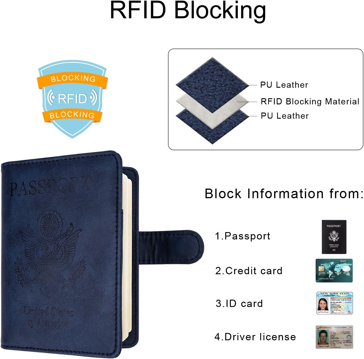 WALNEW Passport Holder Cover Case RFID Passport Travel Wallet, Navy Blue