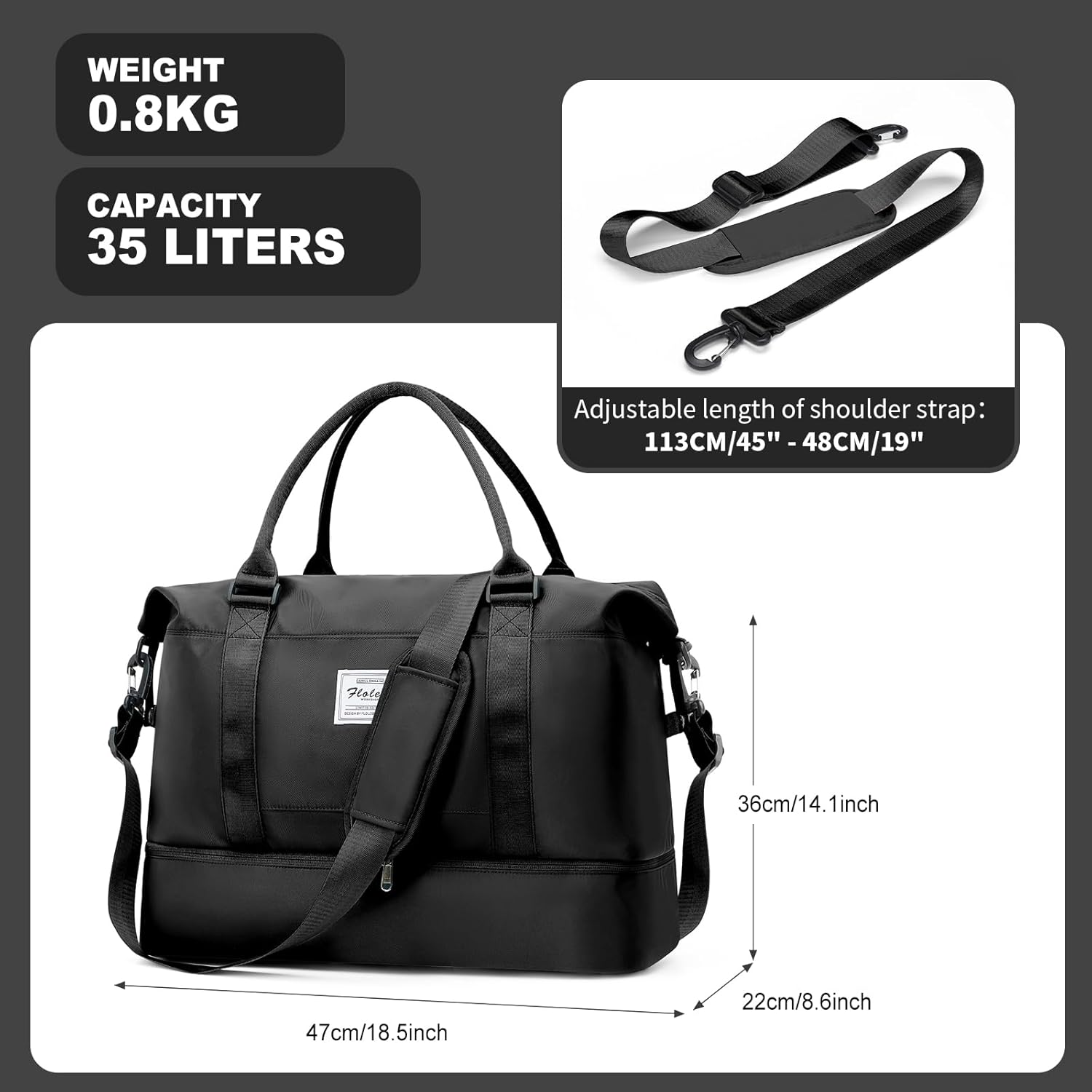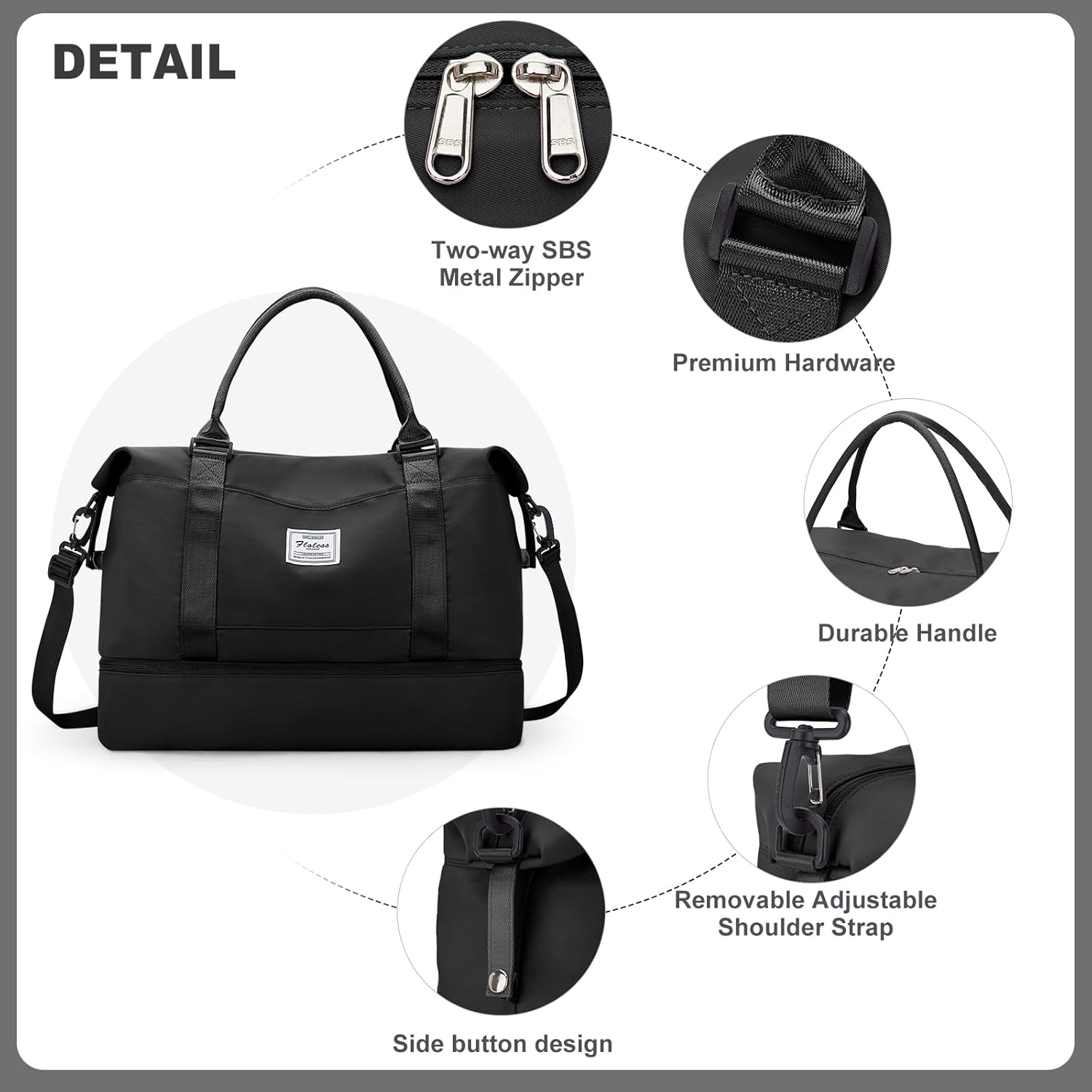 Weekender Bags for Women, Travel Duffel Bags with Shoe Compartment,Personal Item Travel Bag for Airlines, Carry on Overnight Tote Bag for women,Black