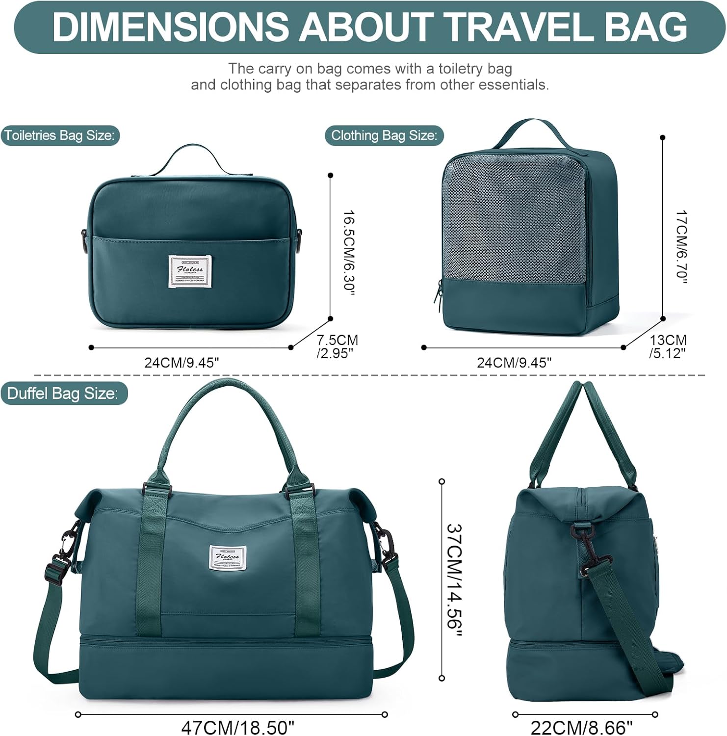 Toiletry Bag & Clothes Bag: The journey duffle bag set handy for the individuals who love touring. The toiletry bag dimension: 9.4 x 3 x 6.15 inches. The clothes bag dimension: 9.45 x 5.12 x 6.7 inches which may retailer underwear, shirts and socks, and many others