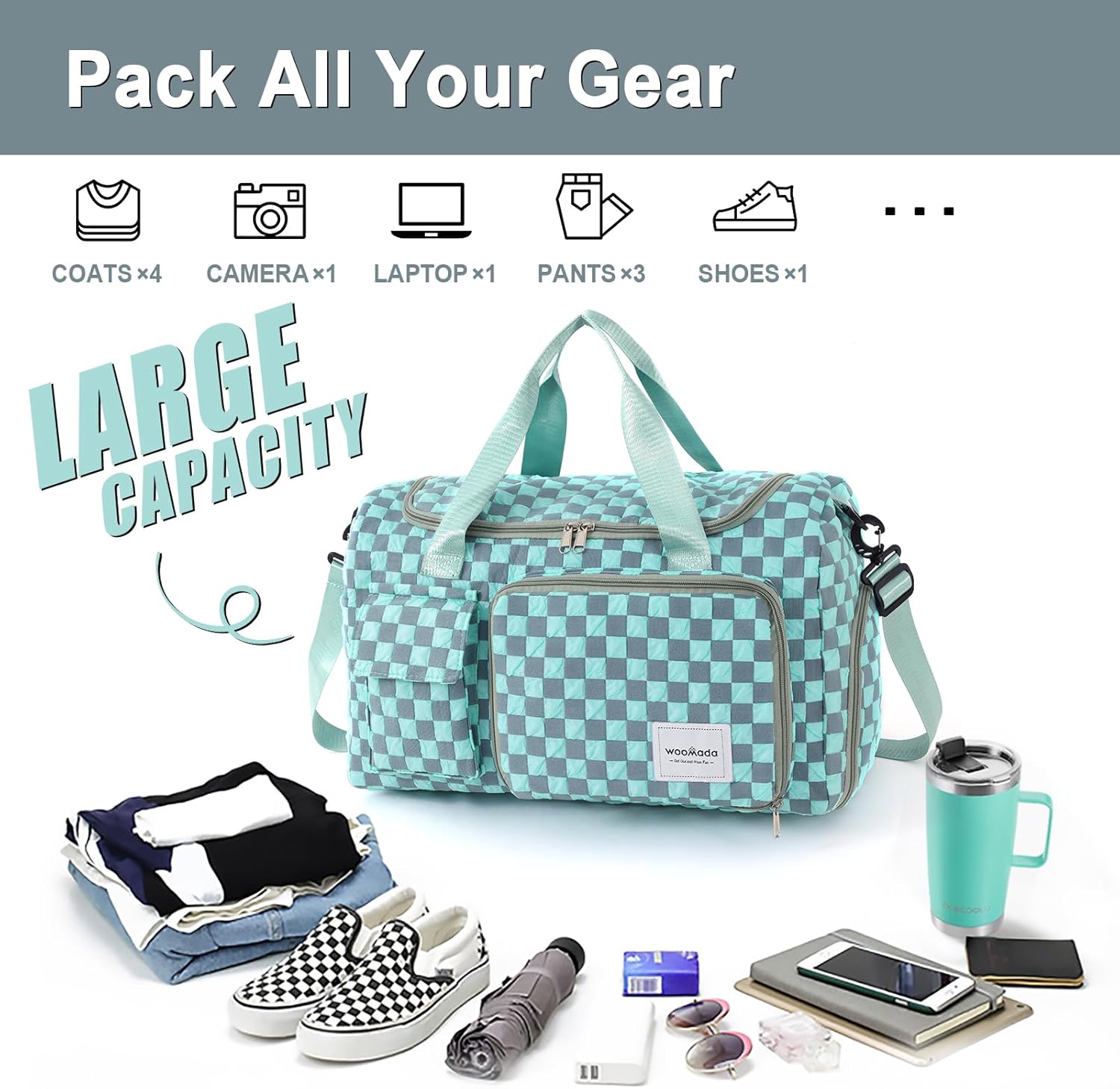 ✨A number of Sizes and Journey Pleasant: WOOMADA giant capability journey bag will be folded based on your wants. Moveable folded measurement: 9.8×7.5×3.1inches (It’s a good suggestion to place it in your baggage bag as an additional bag); Journey giant capability measurement:19.7×9.9×11inches(outfitted with 22-39 adjustable shoulder strap). It could possibly simply maintain your garments, sneakers, laptop computer, books, toiletries, or cosmetics.