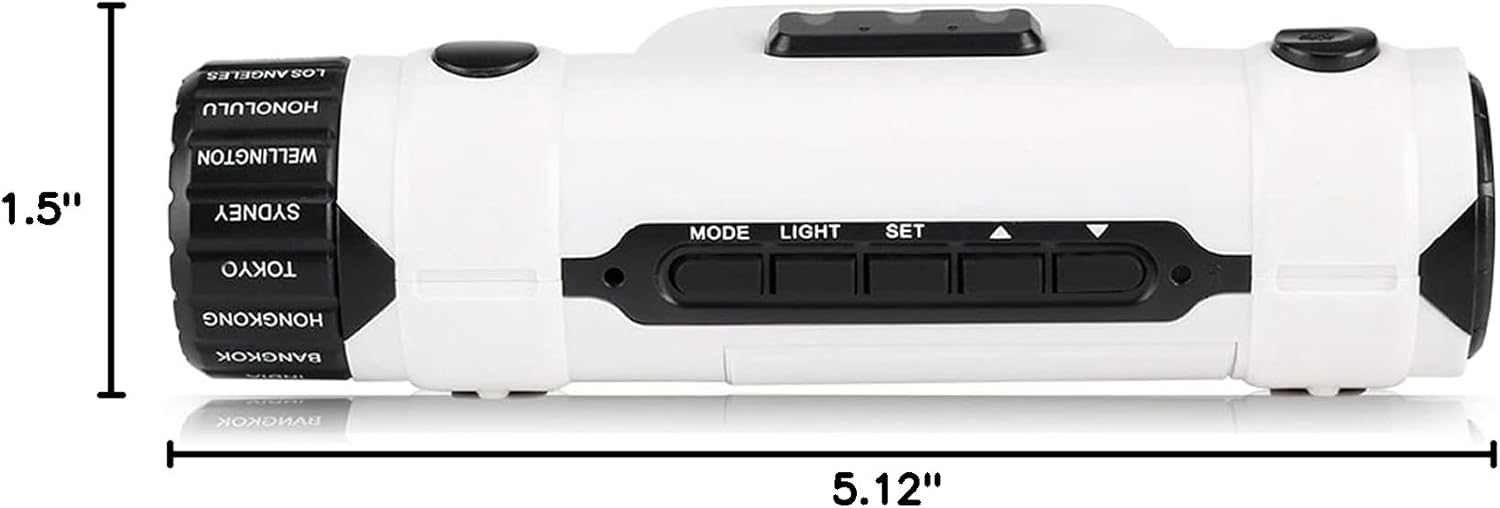 ⏲️Multifunction—Moveable Alarm Clock for Journey. Light-weight and pocket sized flashlight with world time clock with 18 time zones. Flashlight accommodates 3 brilliant LED’s, might help you gentle up at the hours of darkness night time. Temperature show perform: Can swap between ℃ and ℉. Alarm with 16 get up melodies, you’ll by no means boring of the identical music. Perpetual calendar with full month view and date.